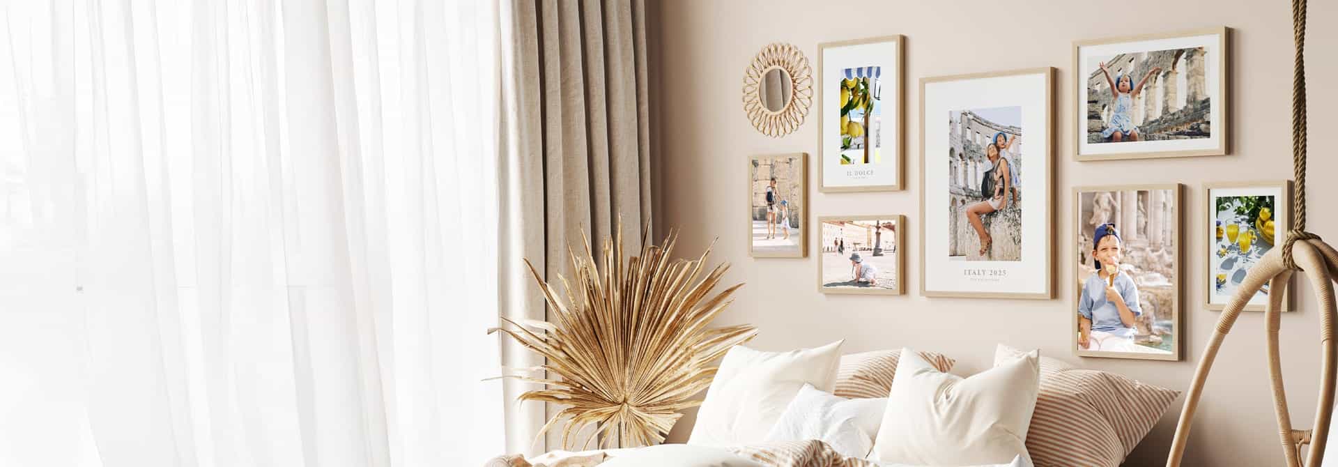 The Frames® are made of a lightweight yet super strong foam board. The frame is made of a sustainable type of wood and afterwards sprayed with a beautiful smooth satin gloss lacquer.